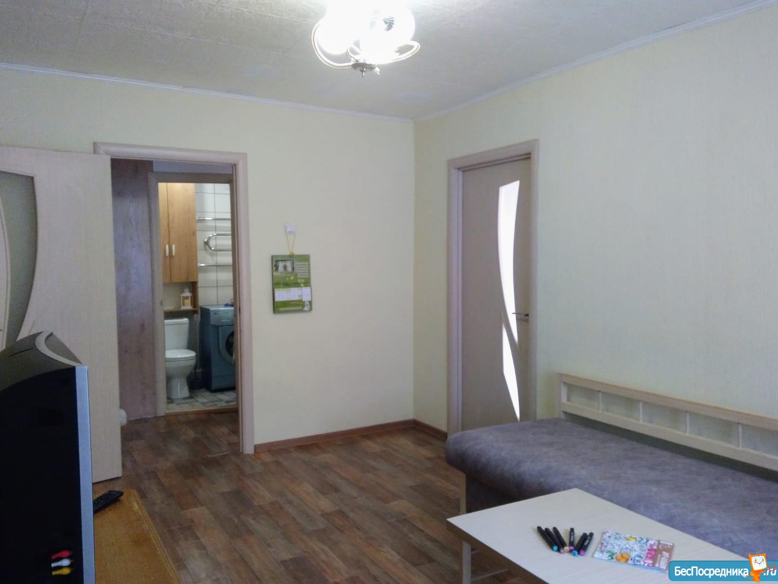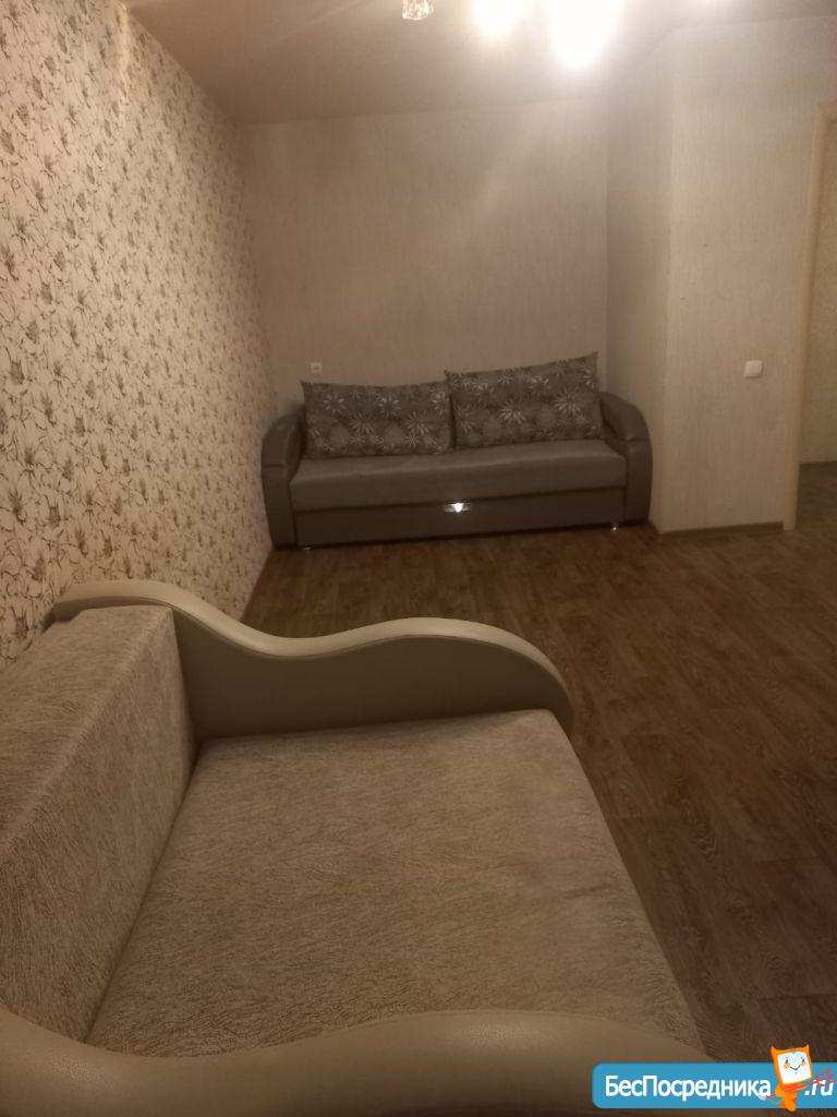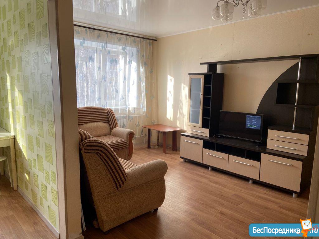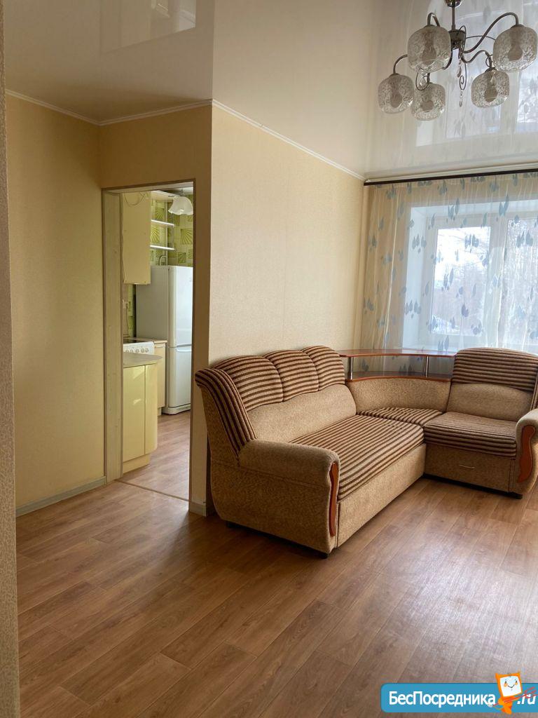 Собственник. Светлая, уютная квартира в центре города, рядом много остановок, школы, детские садики, магазины, кафе, вокзал, автовокзал. В квартире есть вся необходимая мебель диван, шкаф-купе, обеденный стол, табуретки, кухонный гарнитур. бытовая техника стиральная машина, холодильник, страиваемая духовки и плита.