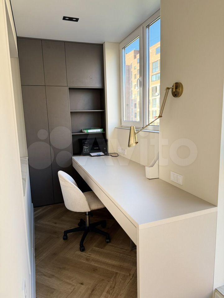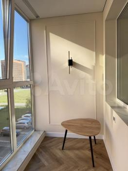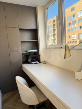 Теплый балкон с подогреваемым полом станет отличным местом для отдыха или работы круглогодично. На балконе установлен большой стол и вместительный шкаф, что делает его функциональным и уютным пространством.