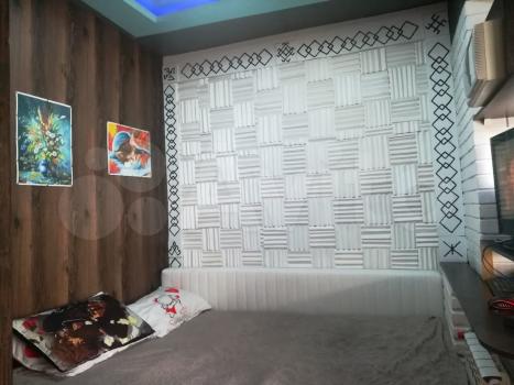 В квартире свежий дизайнерский ремонт сделанный в единой концепции. Квартира очень светлая, окна расположены на солнечной стороне. Огромная лоджия с большими «французскими» окнами присоединена к площади квартиры. На лоджии сделано утепление, можно использовать как дополнительное спальное место. Окна затонированы. Потолок многоуровневый подвесной. На стенах дорогая отделка в 3х декорах. На полу ламинат.