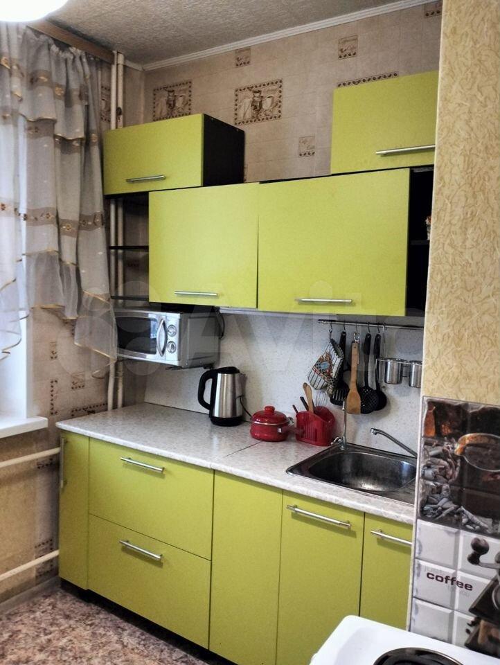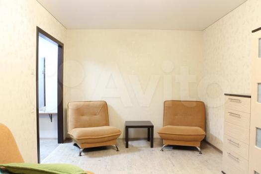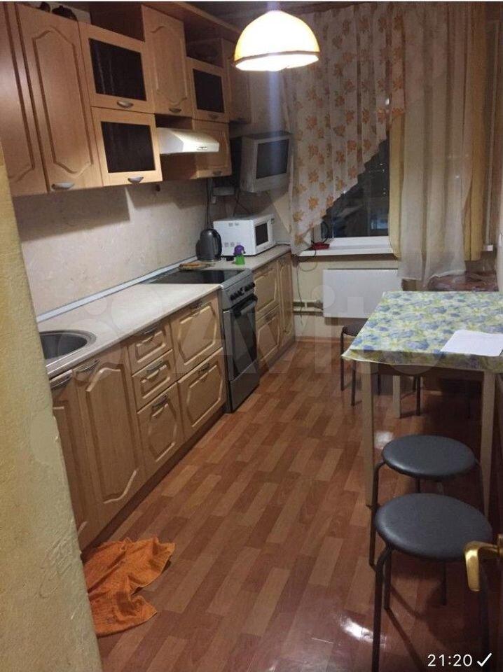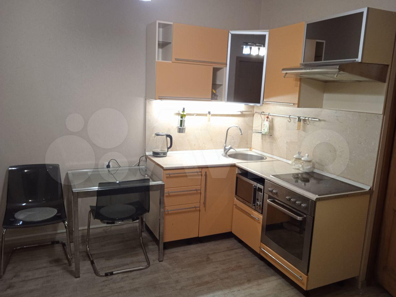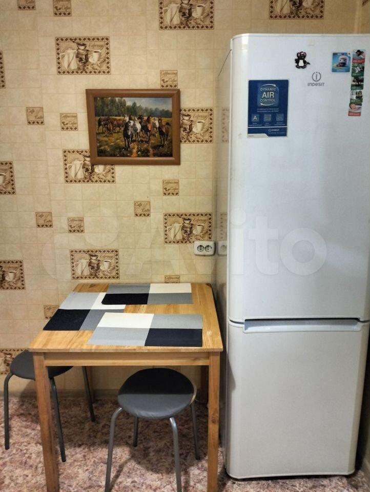В квартире имеется всё, что есть на фотографиях: кухонный гарнитур, стол, стулья 3шт, стиральная машина, абсолютно новый холодильник, кресло, раскладное кресло, раскладной диван, тумба для телевизора, телевизор, шкаф, шкаф для уличной одежды, тумба с зеркалом перед выходом.