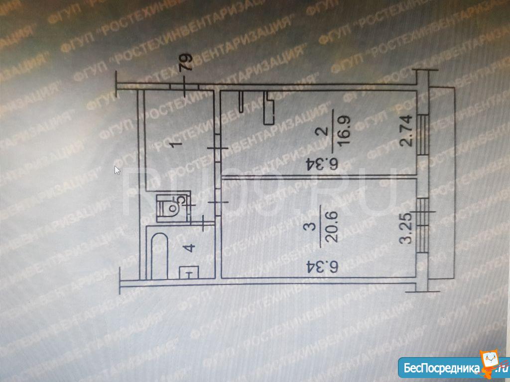 Общая площадь - 36м2, кухня - 9м2, комната-16м2