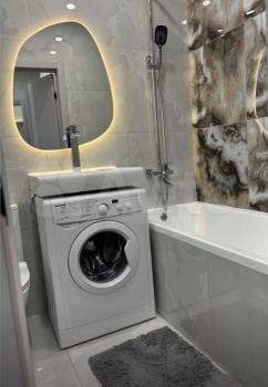 Кухня оснащена Всей необходимой бытовой техников, включая посудомоечную машину. В санузле установлены бойлер и стиральная машина.