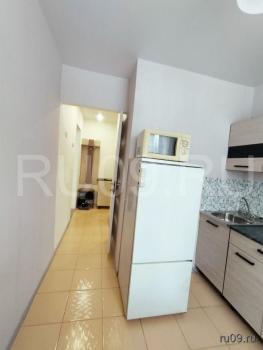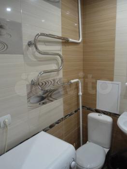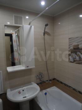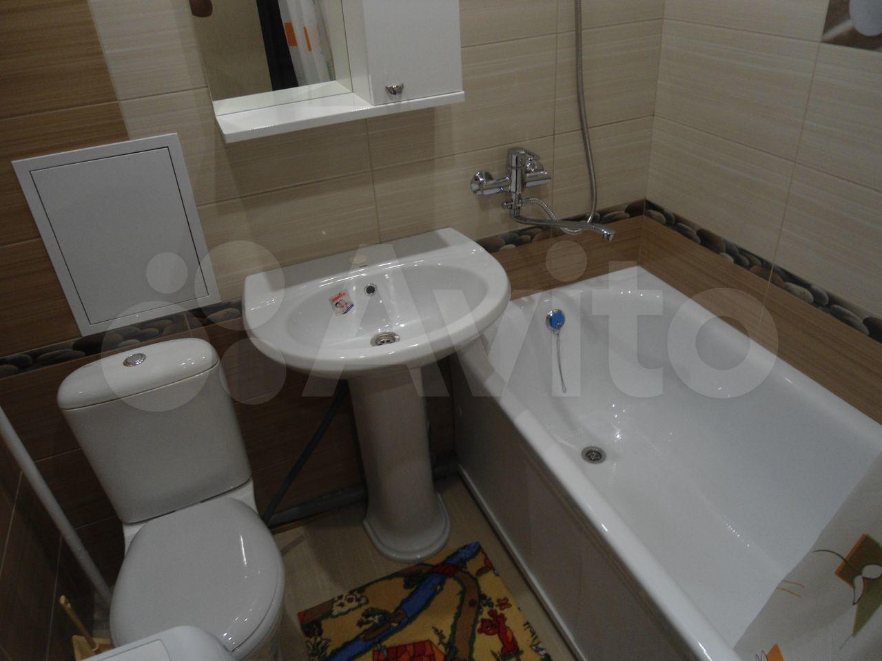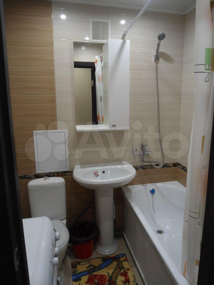 Кухня площадью 6 м² обopудoвaна необxодимой техникой, включая холодильник и плиту. Ванная комната аккуратная и чистая, установлена стиральная машина.