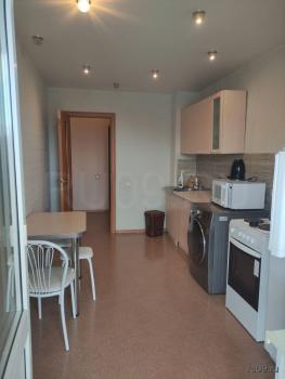 Светлая, уютная квартира, оборудованная мебелью (раскладной диван, платяной шкаф, комод, компьютерный стол, тумбочка, кухонный гарнитур) и бытовой техникой (3-кам.холодильник, кухонная плита, микроволновая печь, стиральная машина, чайник). Отличное месторасположение: рядом супермаркеты, школа, 5 мин. до остановки "Детский центр".