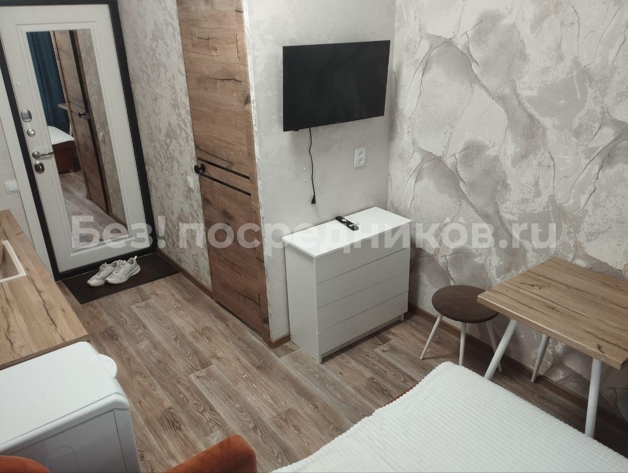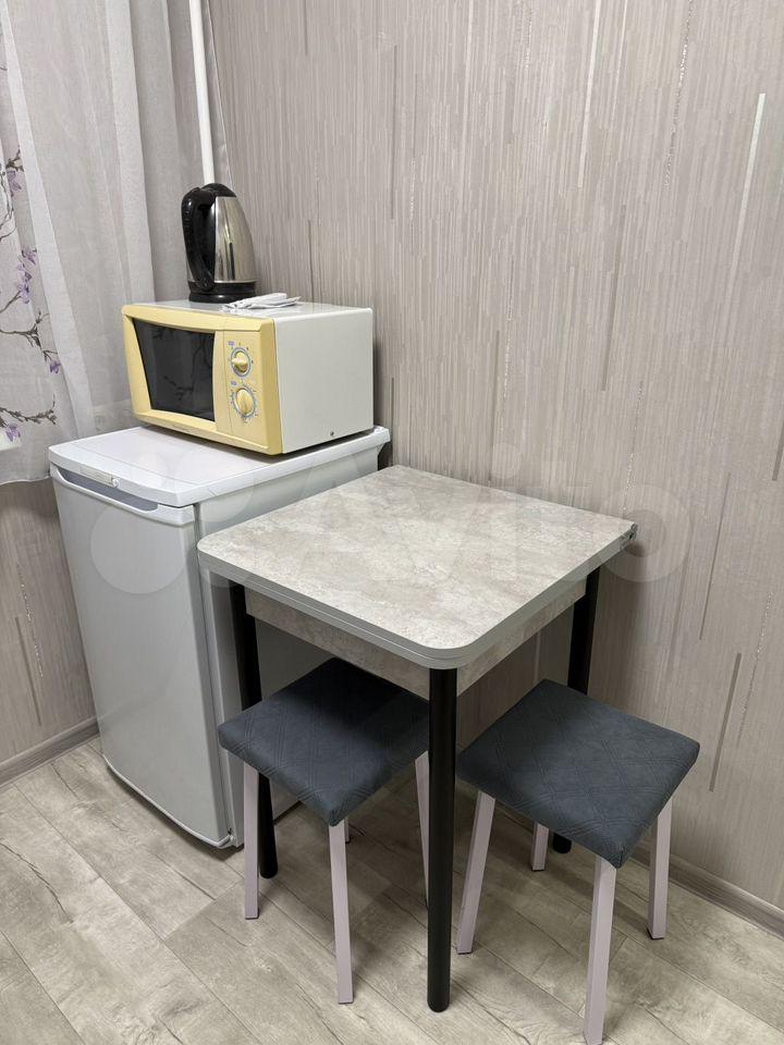 Сдам квартиру-студию на длитeльный срок. В квартире есть уголовой раскладной диван, раскладное кресло, встроенные шкафы, обеденный стол и стулья.