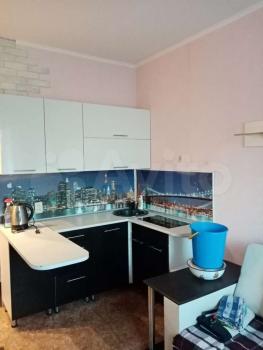 В распоряжении новый холодильник, кухонная зона с плитой, чайником и вместительными шкафчиками для хранения вещей. В комнате есть удобный диван-кровать с подушками, шкаф для хранения вещей и обеденный стол-книжка со стульями.