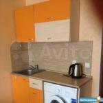 Комната в секции. Холодильник, диван, шкаф. Кухонный шкаф, микроволновка. Граждане-алкоголики, тунея...