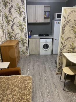 В комнате есть всё для комфортного проживания: кухонный гарнитур, плита, холодильник, чайник, микроволновка, стиральная машина, комод, новый диван, стол, книжные полки, интернет.