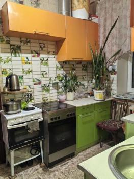 Комната в пятикомнатной квартире. Кухня, ванная, туалет - общие. В комнате диван, стол, шкафы, небольшой холодильник. Арендная плата 12000, коммунальные услуги входят в эту сумму. Для долгосрочного проживания.