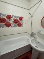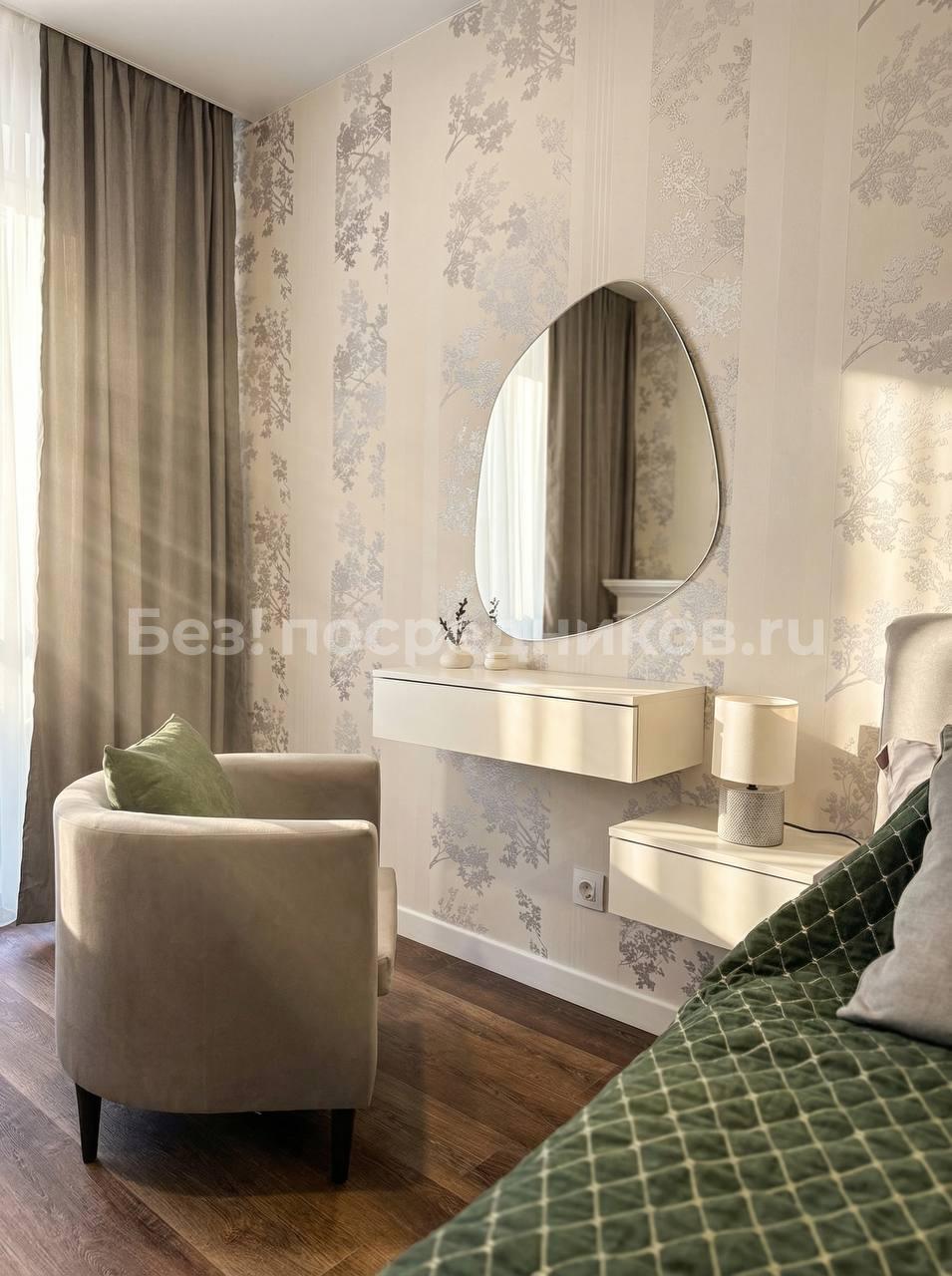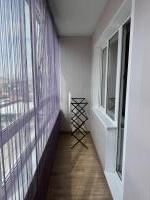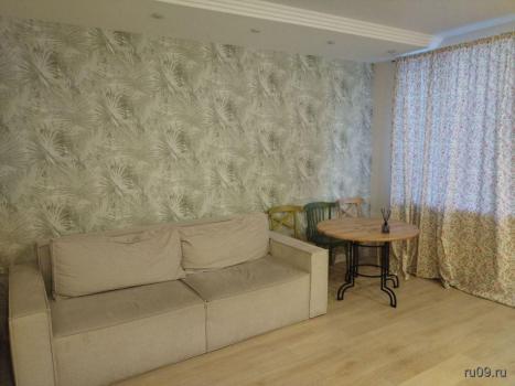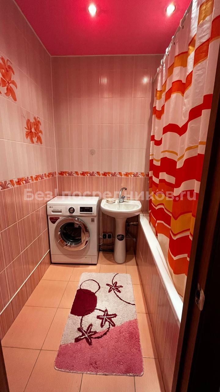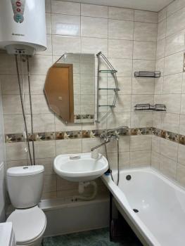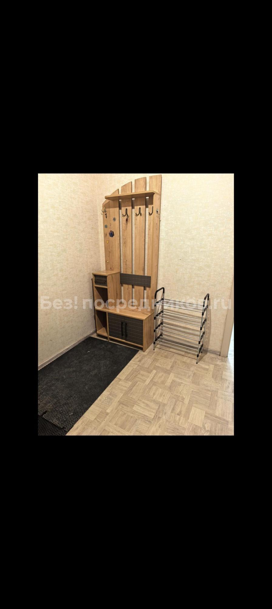 В квартире есть всё необходимое для проживания. Большой диван в гостиной, комод, телевизор. В просторной прихожей большой шкаф купе, в спальне две 1, 5-спальные кровати и шкаф-купе для хранения вещей. Санузел раздельный, имеется водонагреватель. Кухня оснащена: холодильником, плитой, микроволновой печью, вытяжкой, стиральной машинкой. Из гостиной выход на застекленную лоджию с видом на детскую площадку.