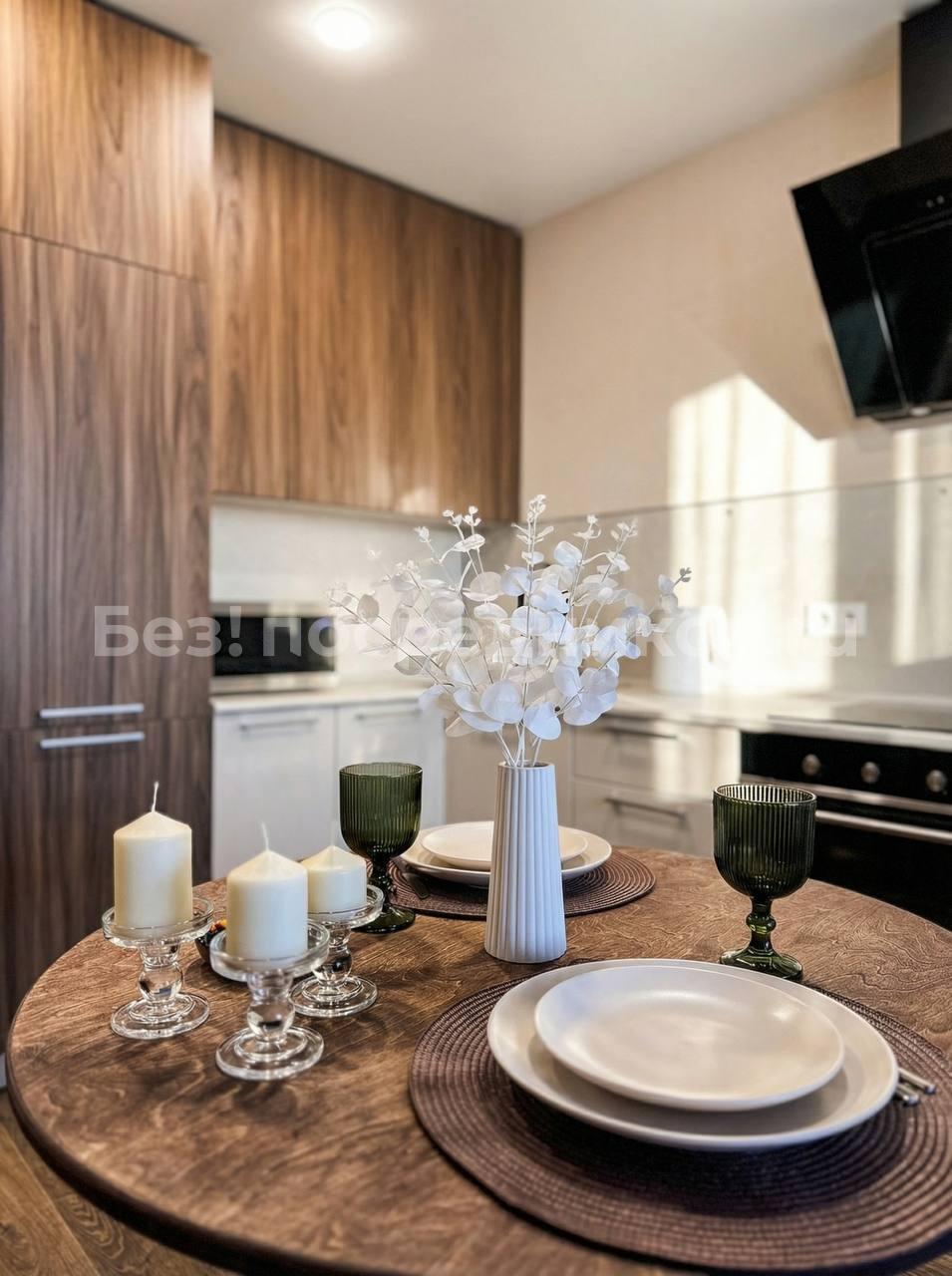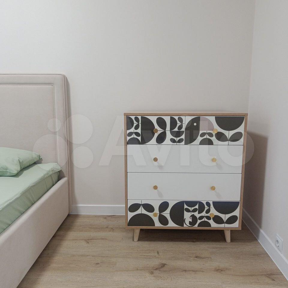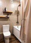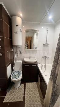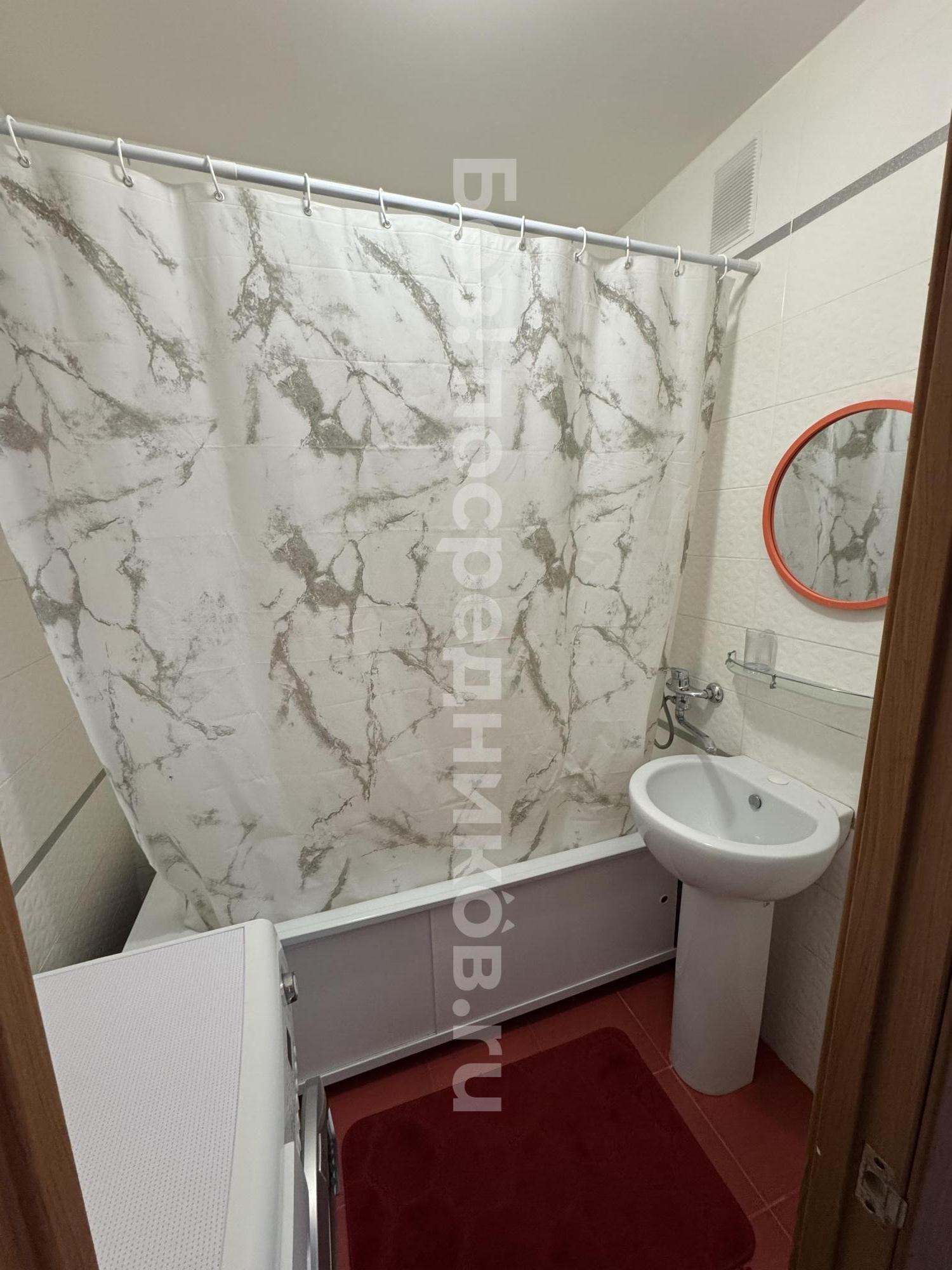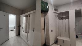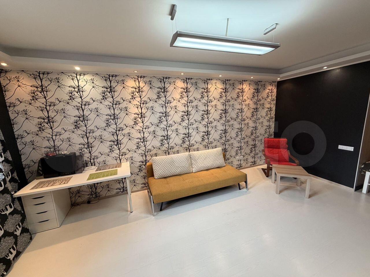 В квартире есть всё необходимое для проживания. Большой диван в гостиной, комод, телевизор. В просторной прихожей большой шкаф купе, в спальне две 1, 5-спальные кровати и шкаф-купе для хранения вещей. Санузел раздельный, имеется водонагреватель. Кухня оснащена: холодильником, плитой, микроволновой печью, вытяжкой, стиральной машинкой. Из гостиной выход на застекленную лоджию с видом на детскую площадку.
