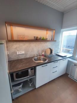 санузел - совмещённый, мебель - кухня, холодильник, плита, микроволновка, стиральная машина, водонагреватель.