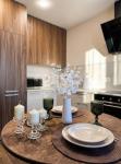 санузел - совмещённый, мебель - кухня, хранение одежды, спальные места, кондиционер, холодильник, плита, микроволновка, стиральная машина, посудомоечная машина, телевизор.