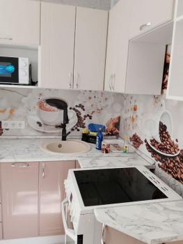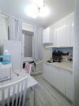 Светлая, уютная квартира, оборудованная мебелью (раскладной диван, платяной шкаф, комод, компьютерный стол, тумбочка, кухонный гарнитур) и бытовой техникой (3-кам.холодильник, кухонная плита, микроволновая печь, стиральная машина, чайник). Отличное месторасположение: рядом супермаркеты, школа, 5 мин. до остановки "Детский центр".