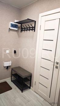 В прихожей установлена обувница с мягким сиденьем, настенная вешалка, небольшой шкаф для верхней одежды, обуви и бытовых нужд.