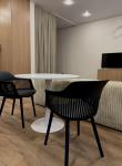В квартире есть всё необходимое для комфортного проживания. В комнатах и на кухне установлена современная мебель. Ванная комната оборудована ванной. Вам не придётся беспокоиться о бытовых удобствах: в наличии холодильник, телевизор, посудомоечная и стиральная машины. Всё это создаёт атмосферу уюта и удобства.