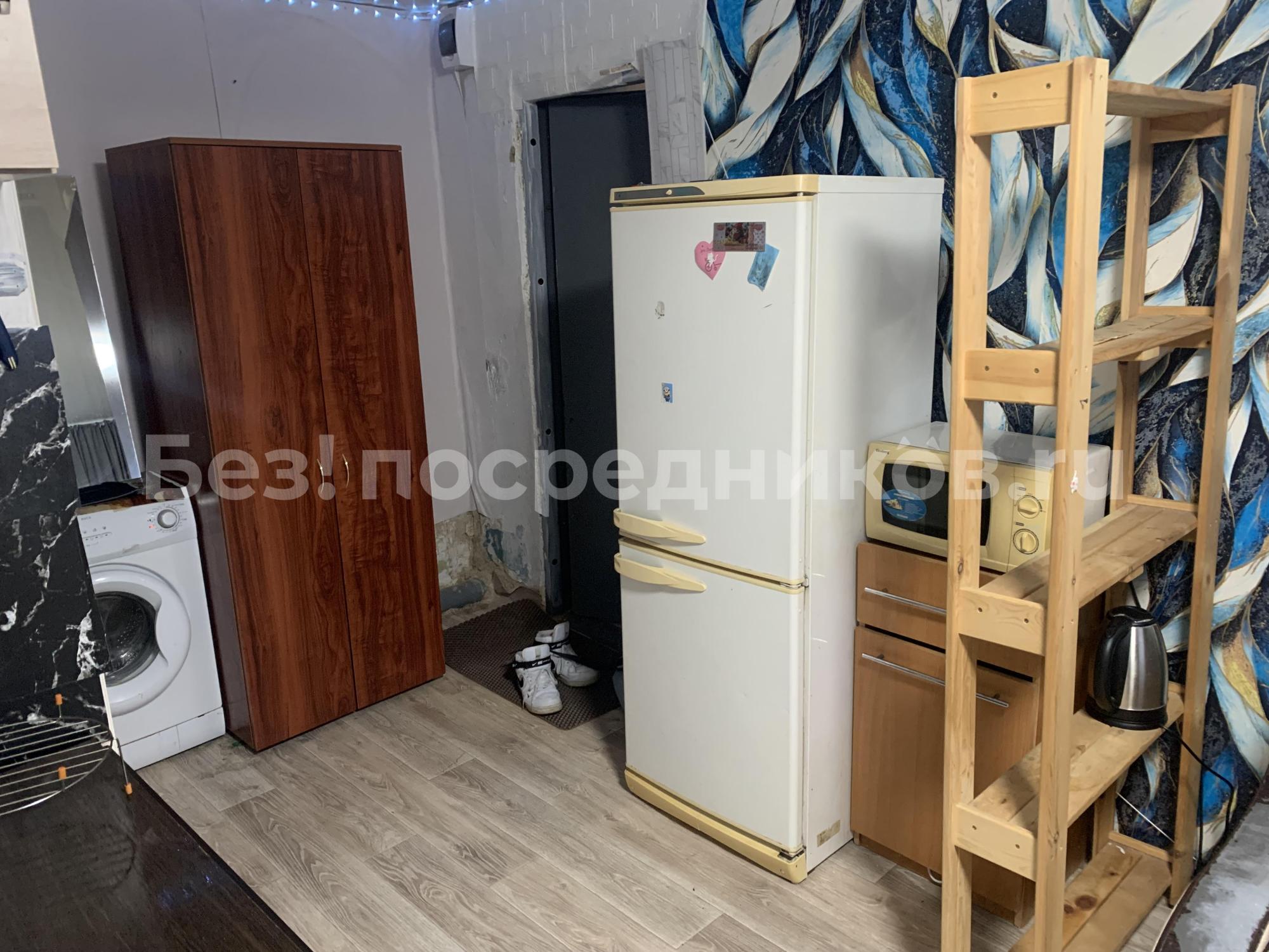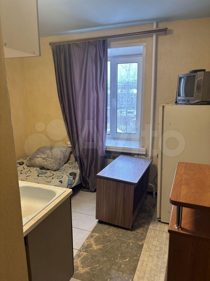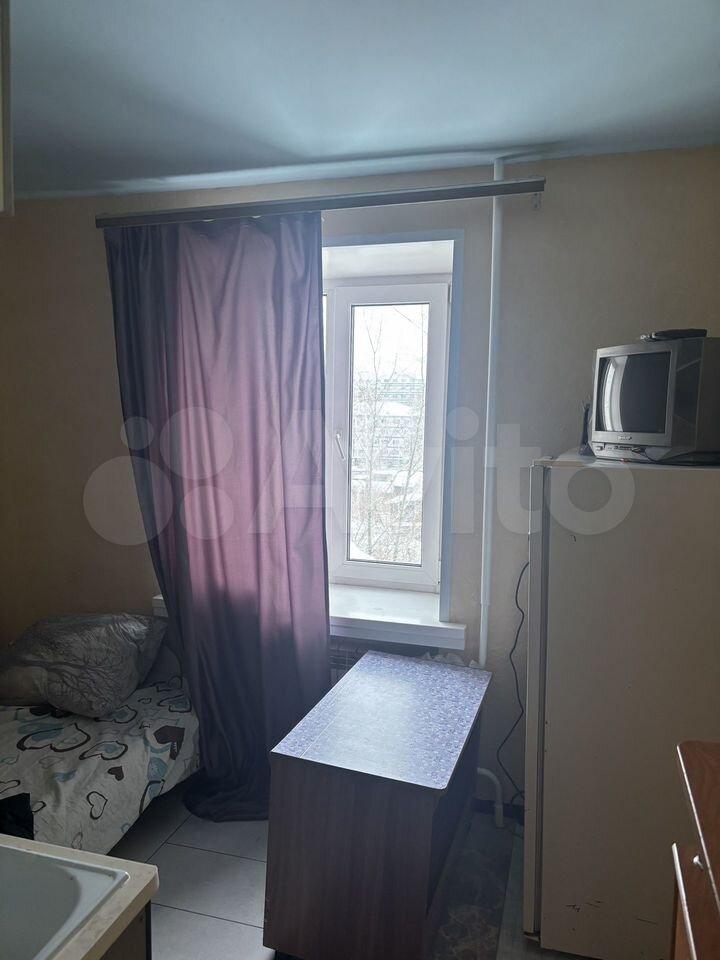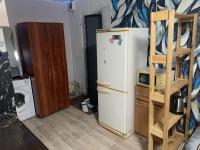 В комнате проведена вода. Есть стиральная машина, холодильник, чайник электрический, плита, микроволновка, все в исправном и хорошем состоянии. Из мебели есть шкафы, диван, стенка. Окно пластик. Солнечная сторона.