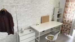 Есть всё необходимое для комфортного проживания. Два вместительных встроенных шкафа-купе, холодильник, стиральная машина, диван, два стола и пр.
