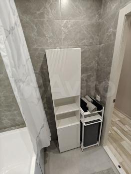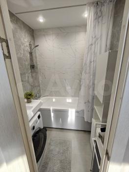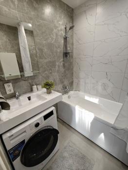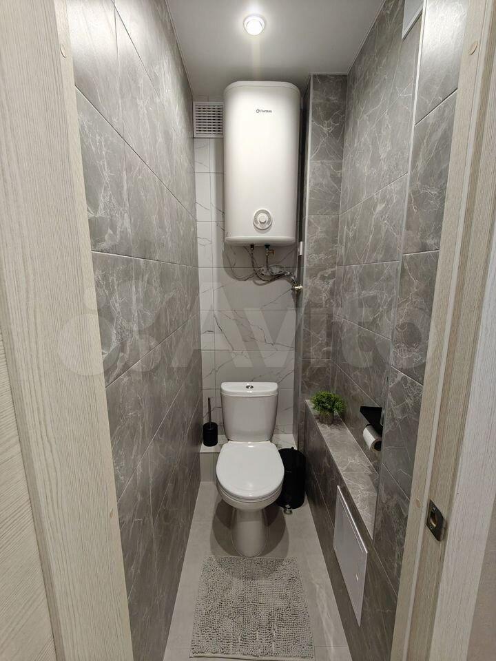Раздельный санузел с отделкой керамогранитом, бойлер на 50 л, стиральная машина, на фановую трубу смонтирована звукоизоляция для акустического комфорта;