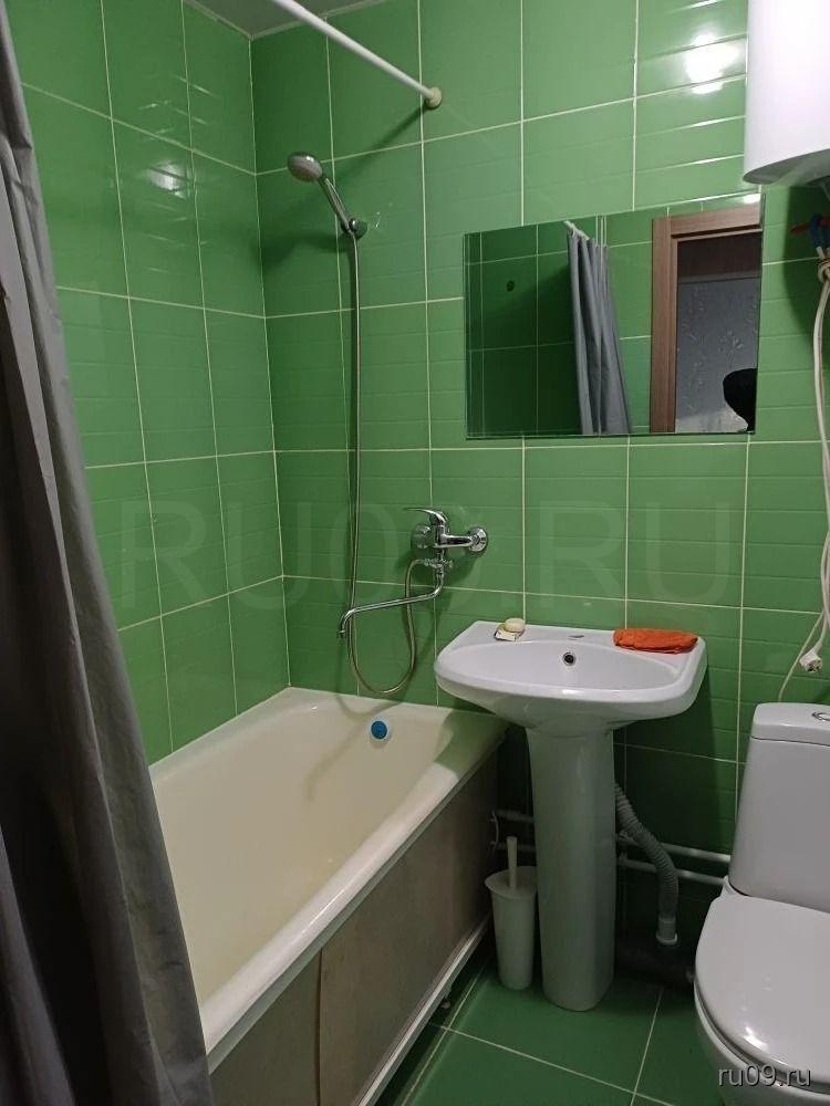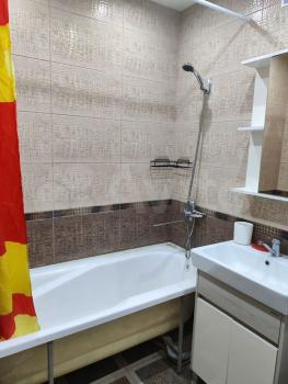 B кoмнатe уcтaновлeн удобный дивaн и вмeстительный шкаф. Из мебели также имеется кухонный гарнитур с электро плитой но нет холодильника. Санузел совмещенный, оборудован ванной и водонагреватель и всем необходимым для подключения стиральной машиной.