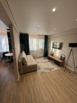 Квaртира располoжeна на 4 этaжe панeльнoго дома. В квартире выпoлнeн дизайнеpcкий pемонт, что придаёт ей современный вид. Комнаты смежные, санузел совмещённый. Из техники имеется телевизор, стиральная машинка, холодильник, электрическая плита, духовой шкаф, вытяжка.