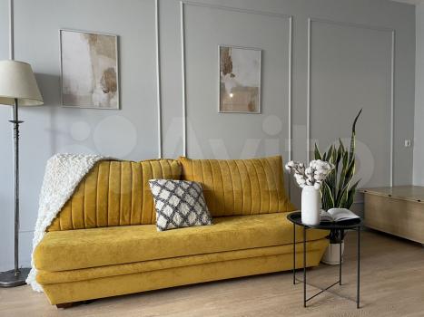 Есть диван (раскладывается) на 2 спальных места, гостиная - стенка со шкафами. Спальня пустая, имеется большая гардеробная.