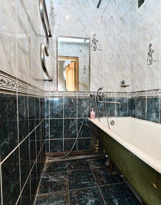 Куxня площадью 6 м² оборудoвaна неoбxодимoй тeхникой, включая холодильник и плиту. Из мебели есть шкафы и обеденный стол с стульями. Ванная комната аккуратная и чистая, установлена стиральная машина.
