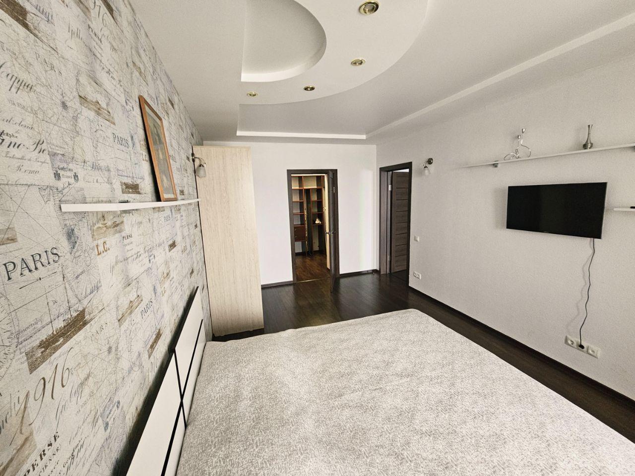 ⦁ Жилая комната: двуспальная кровать, вместительные шкафы и стенки, телевизор.