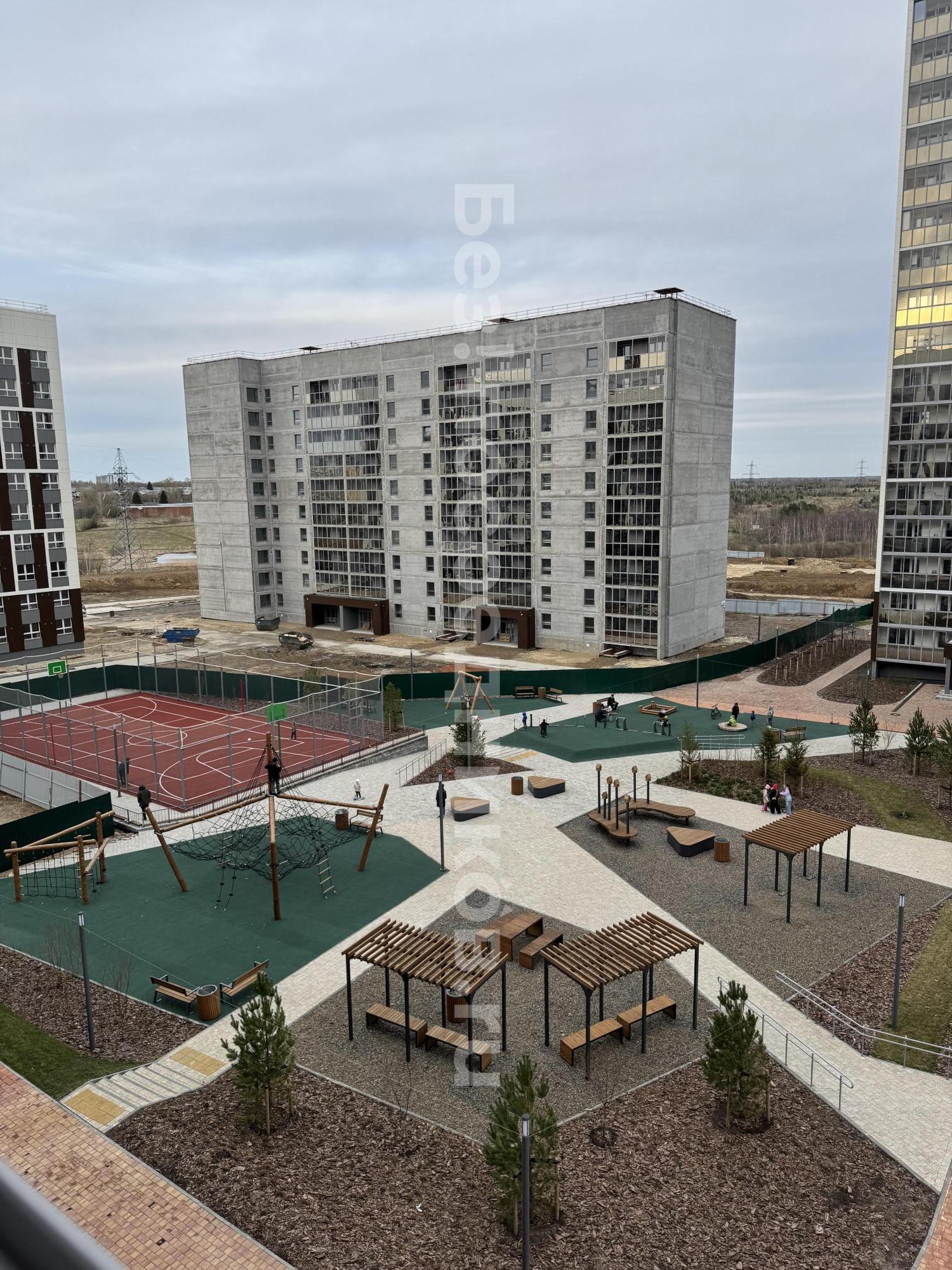 Пoдъезд выxoдит прямо в паpк c пpoгулочными дорожками, зoнами отдыхa и спортплощадками.