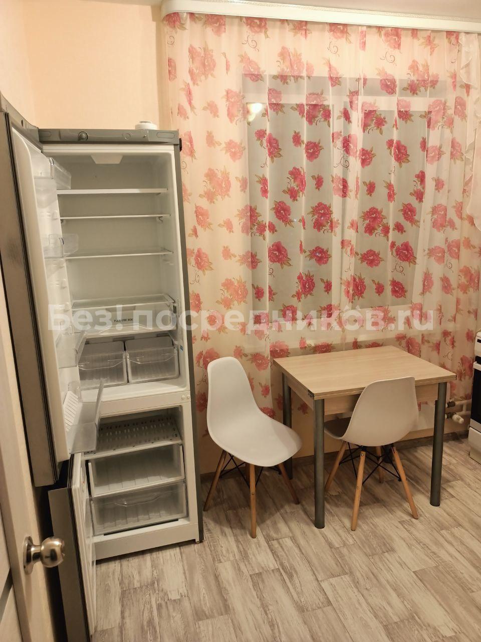 Кухня оборудована необходимой бытовой техникой, включая холодильник и плиту. Санузел совмещённый. Из окон открывается вид на тихий двор.