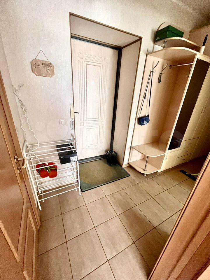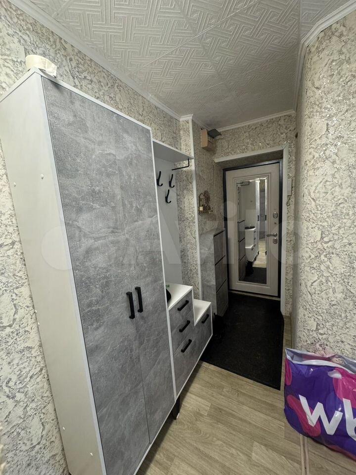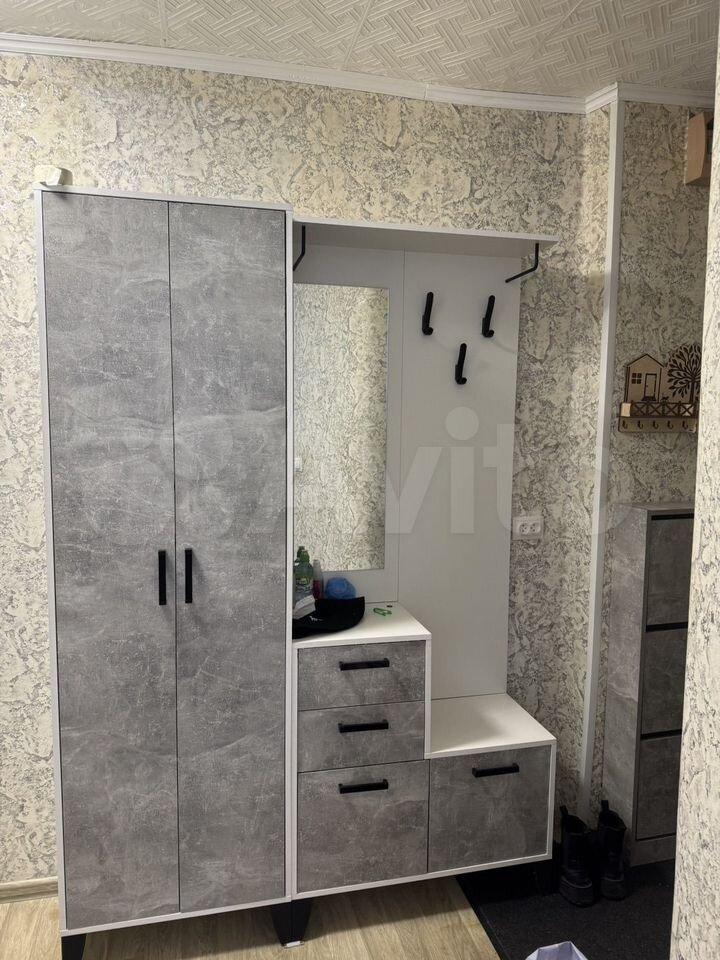 В квартире есть диван еврокнижка, комод, пенал, шкаф в холодном помещении входа, кухонный гарнитур, стол и 2 стула.