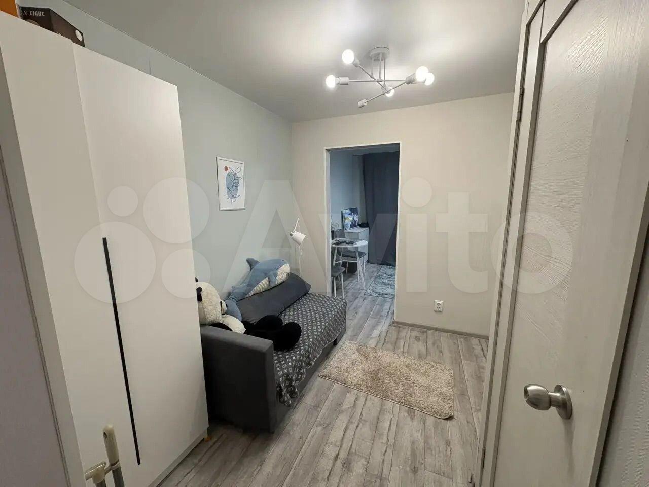 в Кировском районе на 4-м этаже в 5-этажном кирпичном доме по адресу Промышленный переулок 9а, общей площадью 14 м2. Есть мебель, холодильник, плита мультиварка есть всё кроме стиральной машины Санузел совмещенный.