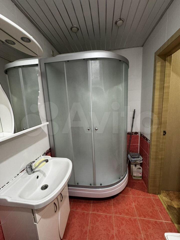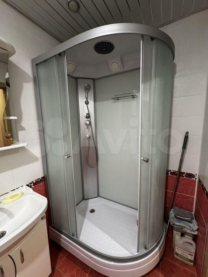 Санузел совмещенный, оборудован душевой кабиной и стиральной машиной.