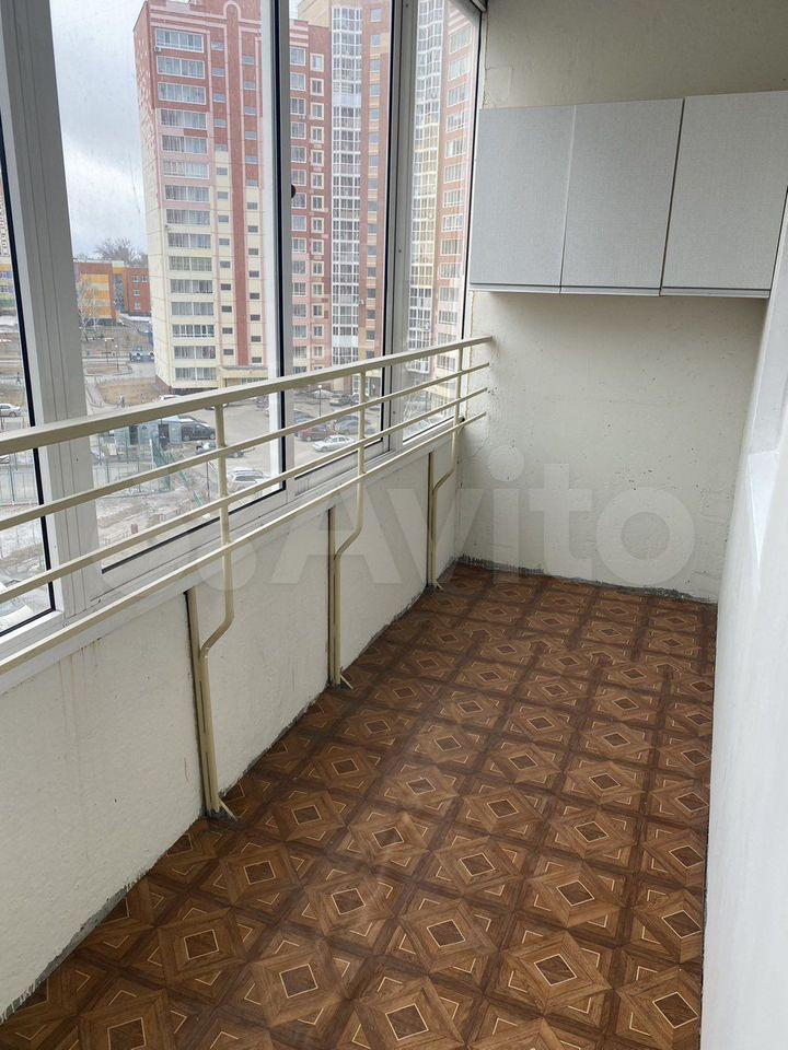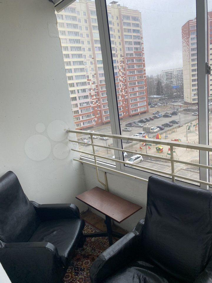 В квартире две комнаты-гостиная, совмещенная с кухней и Спальня. Ванная-туалет раздельные. Есть большая застекленная лоджия. Окна выходят во двор.