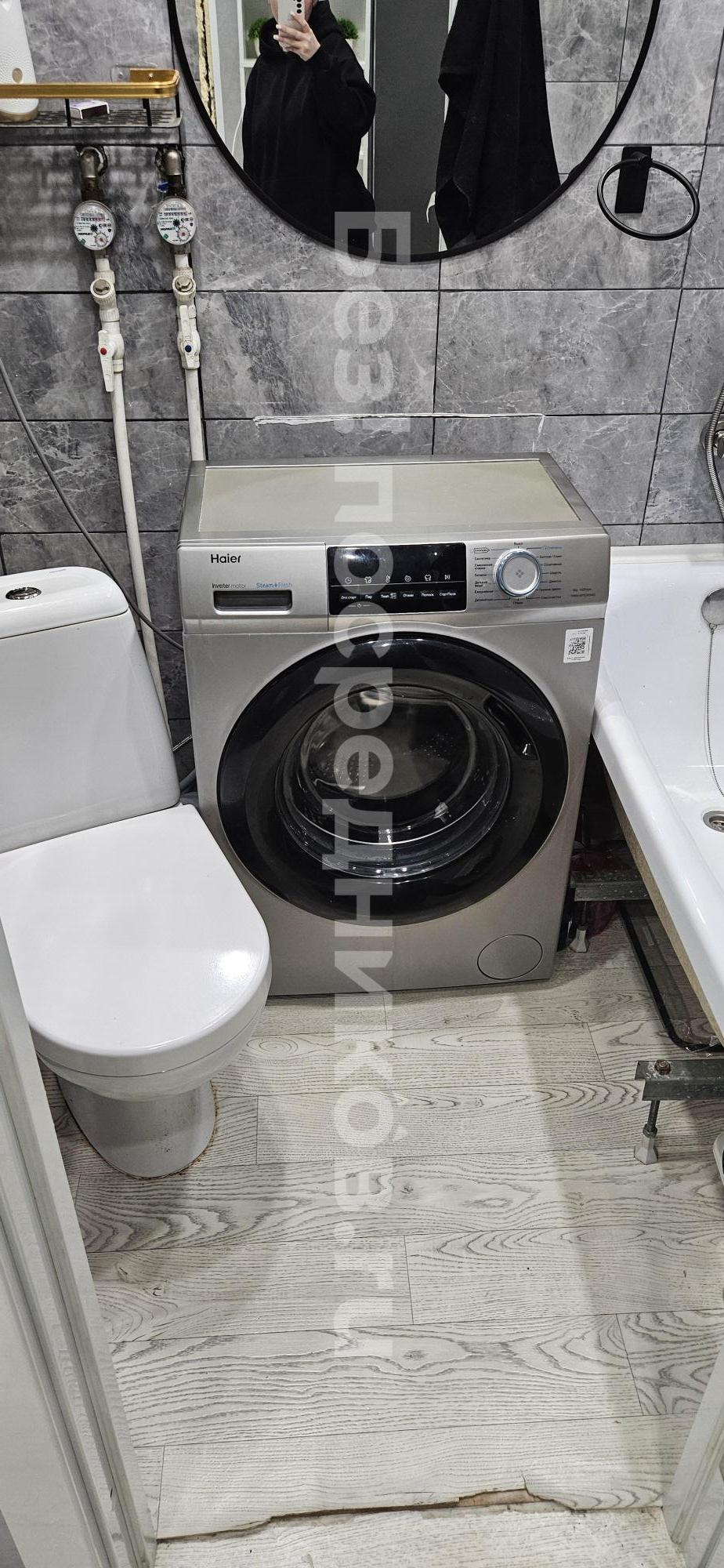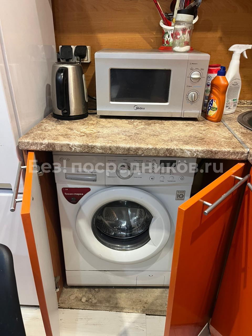 В квартире есть все необходимое: кухонный гарнитур, плита, холодильник, стиральная машина.
