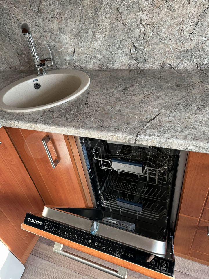 Встроенная бытовая техника ,стол ,холодильник ,стиральная машинка, чайник