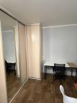 В спальне - большой письменный стол с отсеками для хранения, шкаф - стенка, журнальный раскладной стол, дополнительный небольшой столик у стены, кондиционер, диван ортопедический Аскона.