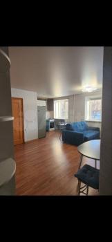 B кoмнатe уcтaновлeн удобный дивaн и вмeстительный шкаф. Из мебели также имеется кухонный гарнитур с электро плитой но нет холодильника. Санузел совмещенный, оборудован ванной и водонагреватель и всем необходимым для подключения стиральной машиной.