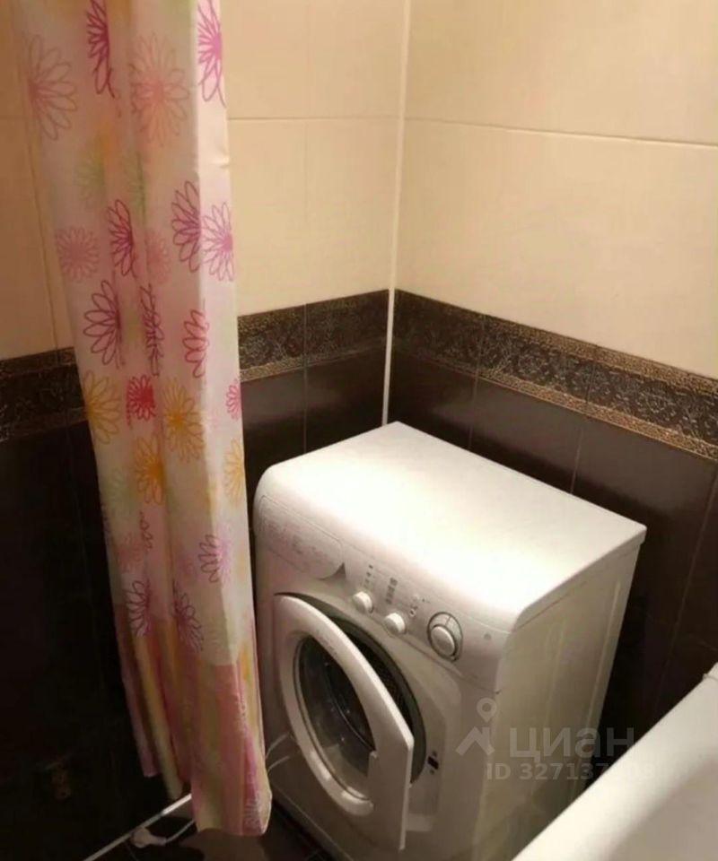 Кухня компактная, оснащена необходимой техникой, включая стиральную машину. Санузел совмещенный, оформлен в светлых тонах.