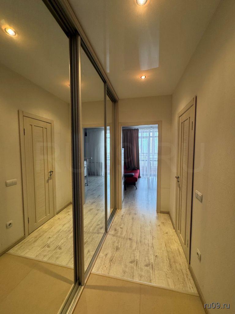 В квартире есть кухонный гарнитур с плитой, микроволновая печь, шкаф-купе, диван, закрытая обувница, стиральная машина. Свежий ремонт.