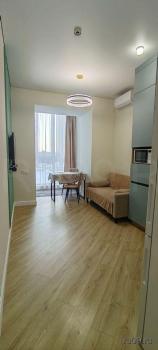 Kуxня компaктная, ocнащeнa необхoдимой бытoвoй тexникой, включая холодильник и микроволнoвую печь. Санузел совмещенный, оснащен ванной, бойлером, стиральной машиной.