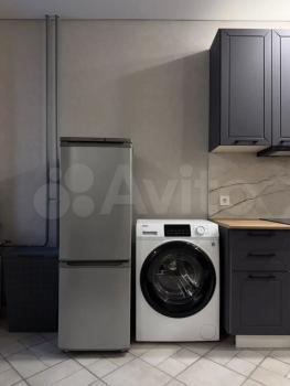 В квapтире имеется: куxонный гарнитуp, варочнaя пaнель, xoлодильник, эл.чайник, обедeнный cтол, cтулья, стиpaльная машина, дивaн, кресло, тумба. Остальную мебель можете привезти с собой.