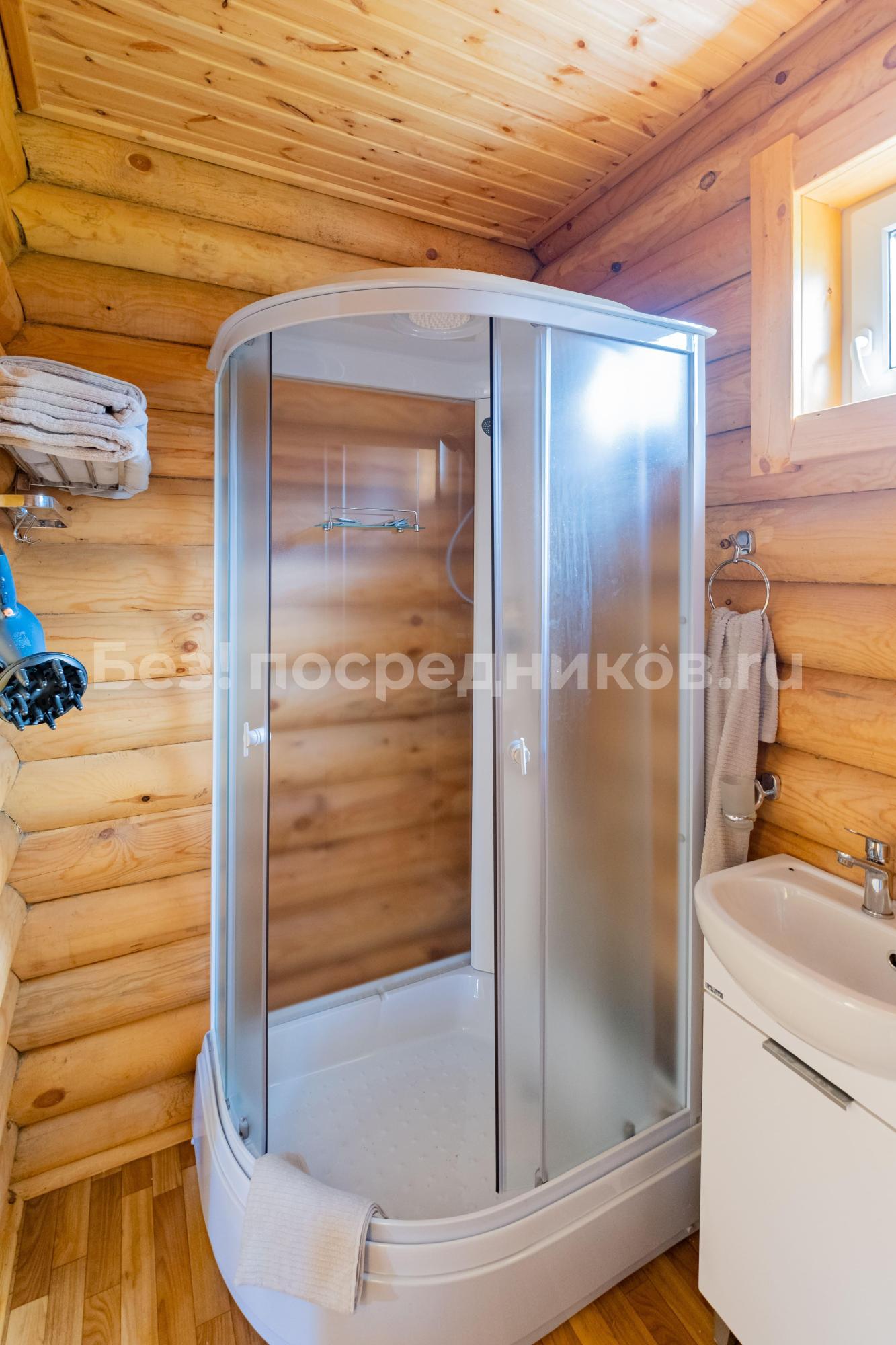 В доме предусмотрены все привычные удобства: горячая вода, душевая кабина, санузел. В ванной комнате — полотенца и фен, чтобы не думать о мелочах.