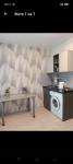 Внутри есть все необходимое для комфортного проживания: холодильник, стиральная машина, телевизор с кабельным/цифровым ТВ, шкафы и удобный диван. Кухня оборудована современной техникой и обеденным столом. Совмещенный санузел оформлен в светлых тонах.